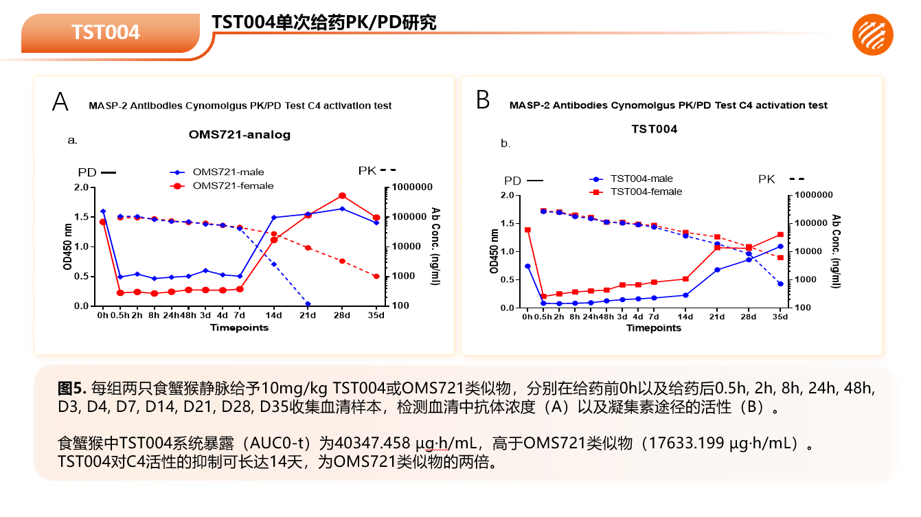 人源化IgG4抗MASP2抗体TST004在非人灵长类动物(NHP)身上展现出对MASP2补体通路强大的体内外抑制活性和出色的安全性